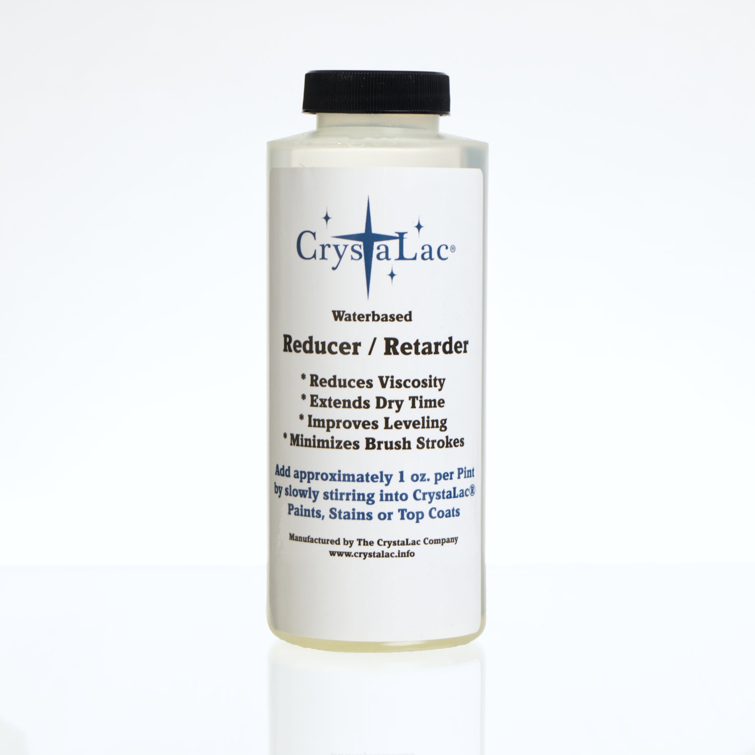 CrystaLac Viscosity Reducer / Retarder is designed for thinning and extending the dry time of CrystaLac Coatings.